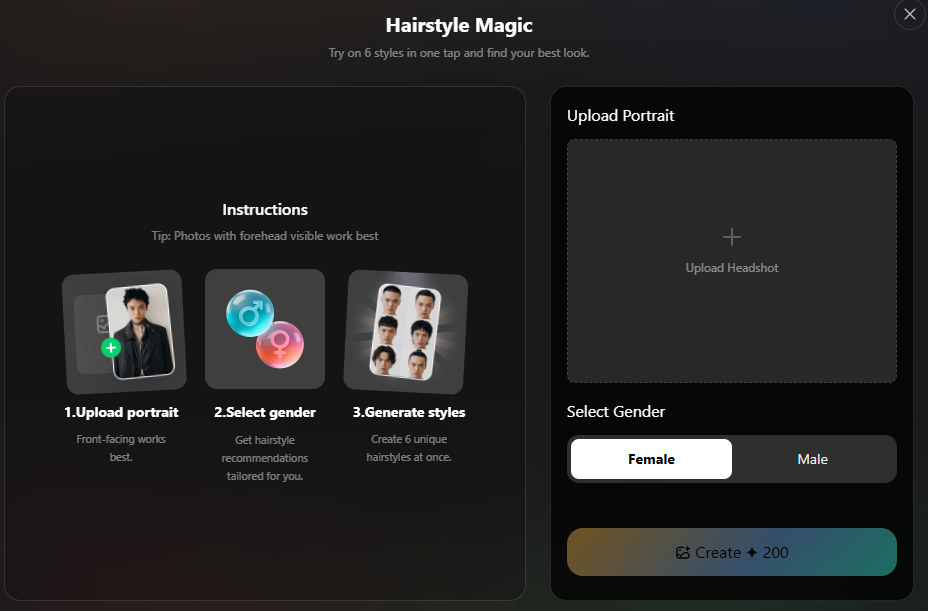 If you’re unsure whether a hairstyle will suit you, try our AI hairstyle changer before committing to the cut. Instantly preview different looks and find the perfect style with zero risk.