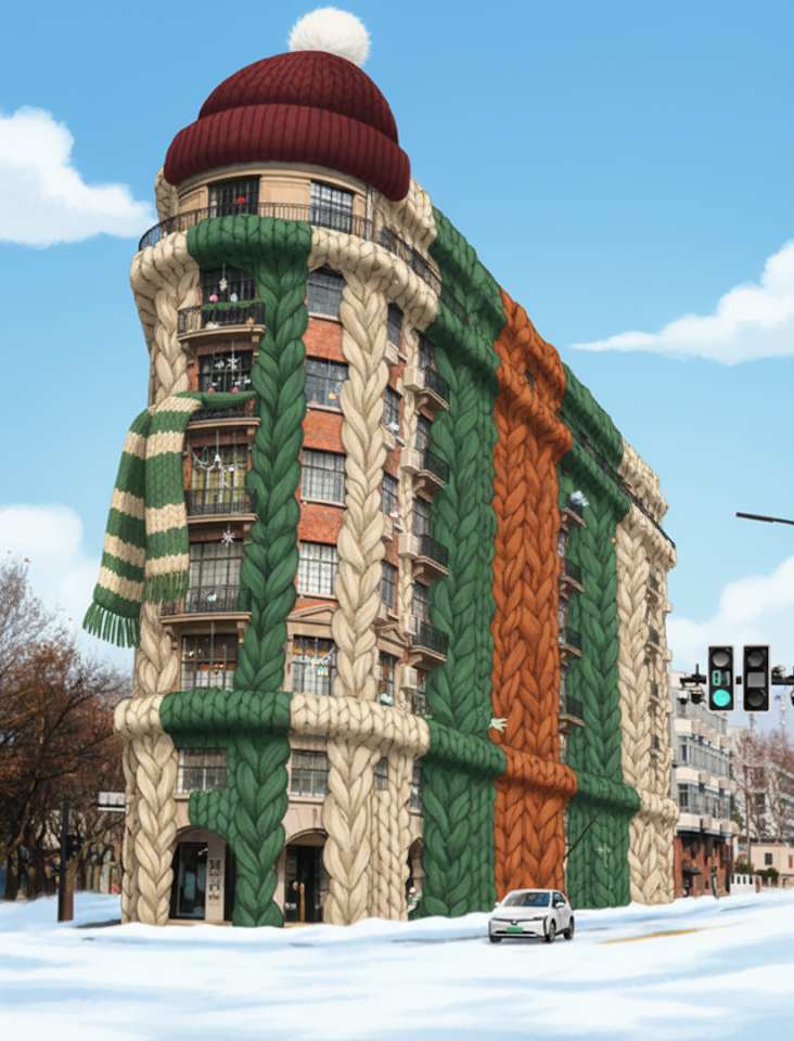 Curious how buildings adapt to winter? Discover surreal concept art showing structures in cozy coats—explore creative warmth now!