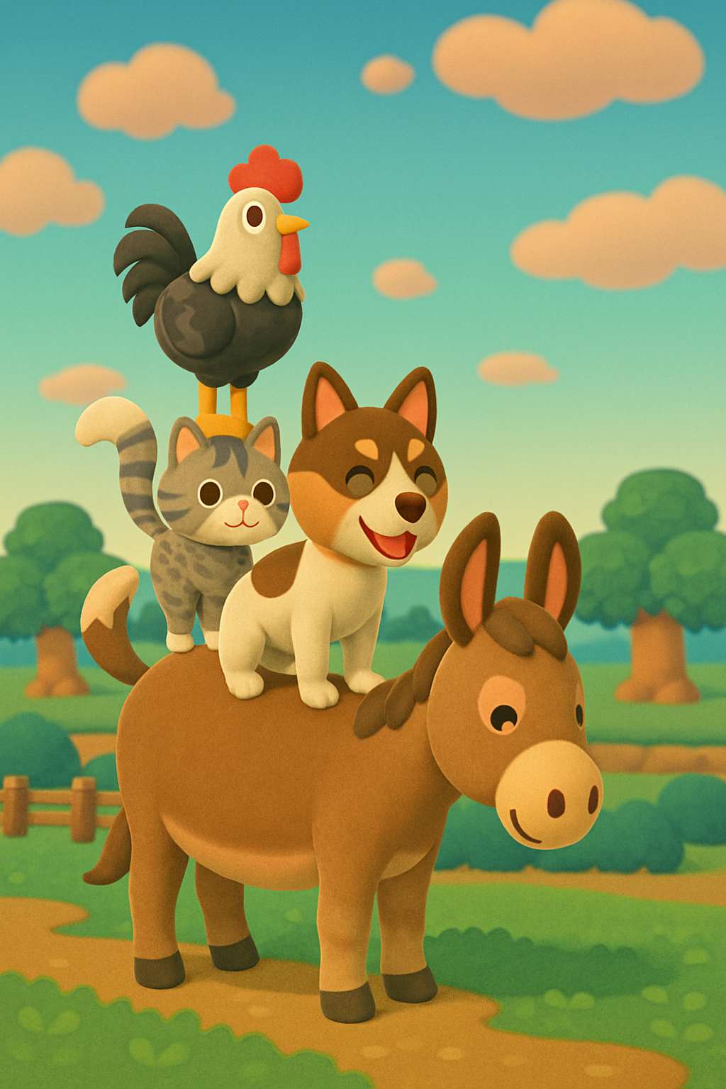 Animal Crossing Style Cute Kawaii Character and Village Scene AI Image Generator
