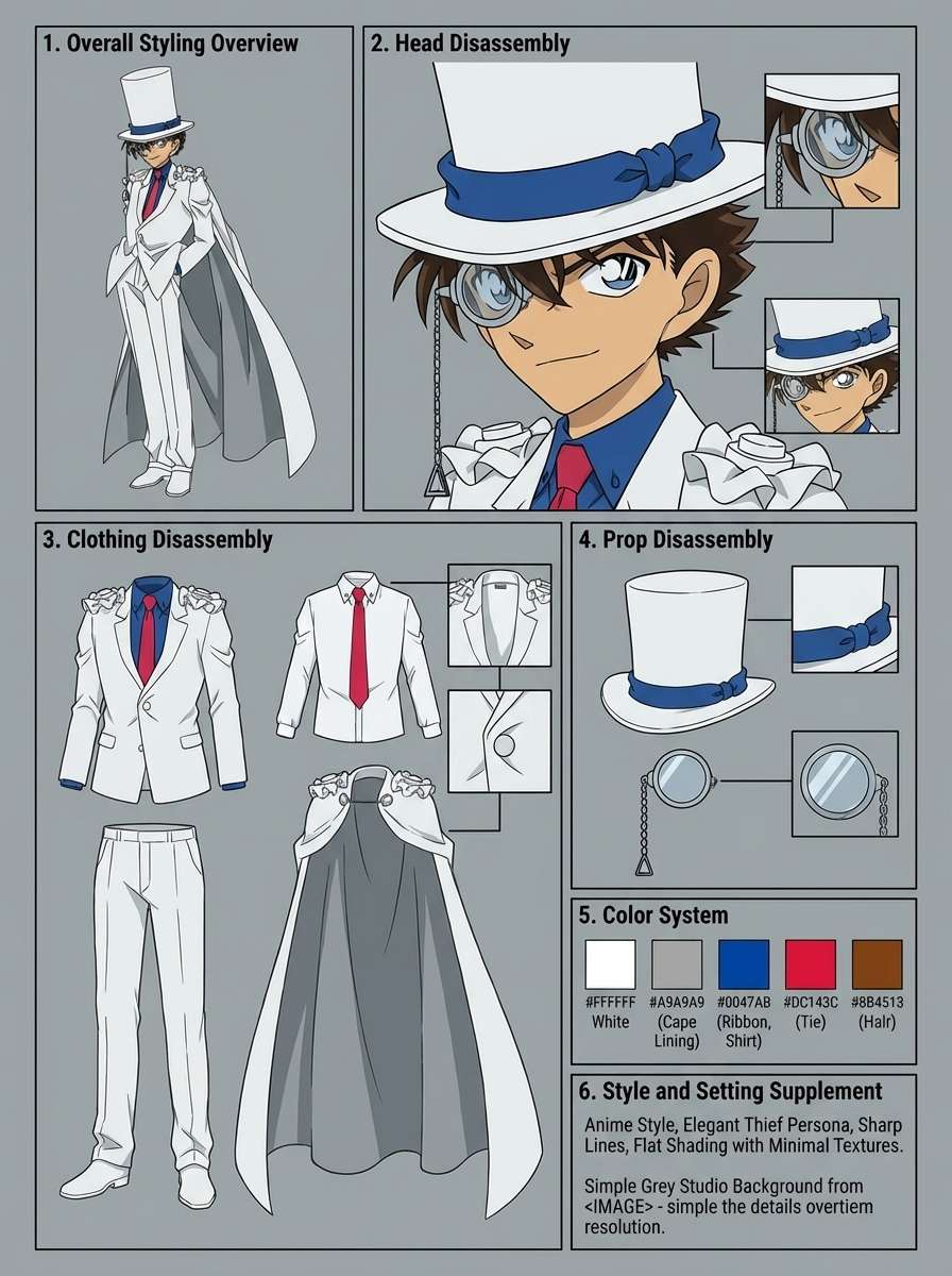 Character Disassembly Diagram & Breakdown Illustration is a tool that systematically breaks down the overall image, traits, background, and other dimensions of a character, and presents them in a visual form. It is widely used in scenarios such as character creation, character analysis, and brand IP shaping. Its core is to achieve deep deconstruction and accurate presentation of characters through "decomposition"
