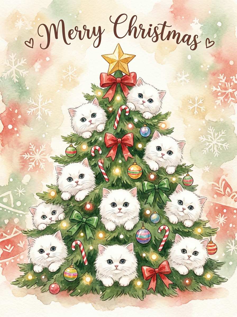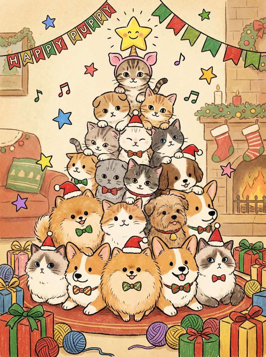 Stack pets in different poses and expressions to form a Christmas tree shape