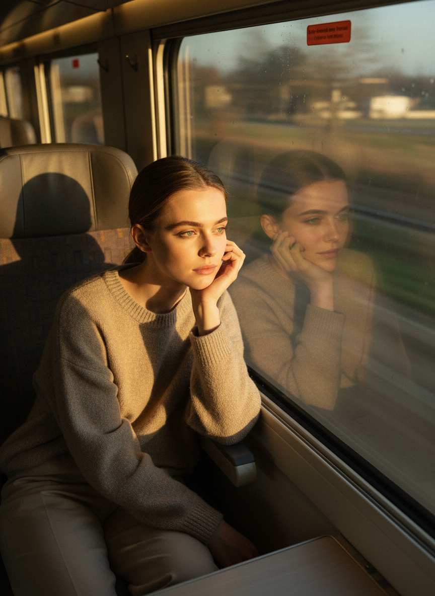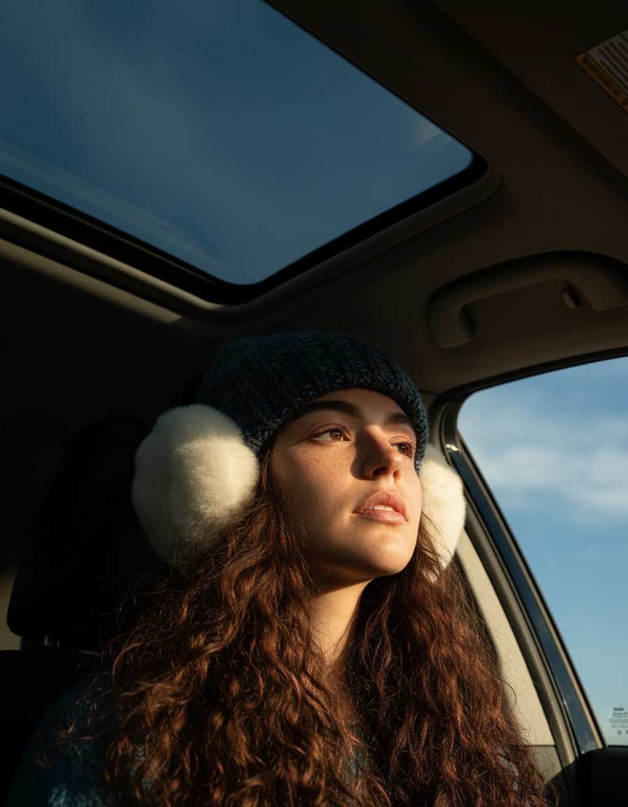 Click to Generate a Photo – Instantly Get a Stunning Artwork Similar in Style to "Dreamy & Cinematic Car Window Atmosphere Photo Golden Hour Travel Portrait"