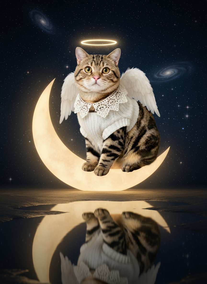 Warm Cat Angel Memorial Art AI Generator helps you create a peaceful, angelic tribute image of your cat using AI. It adds elements like wings, halos, and soft heavenly lighting to honor your pet.