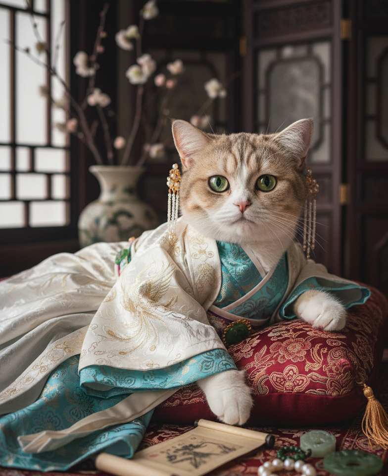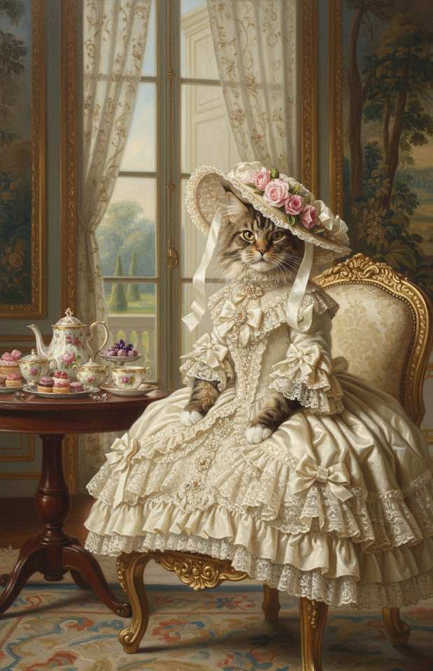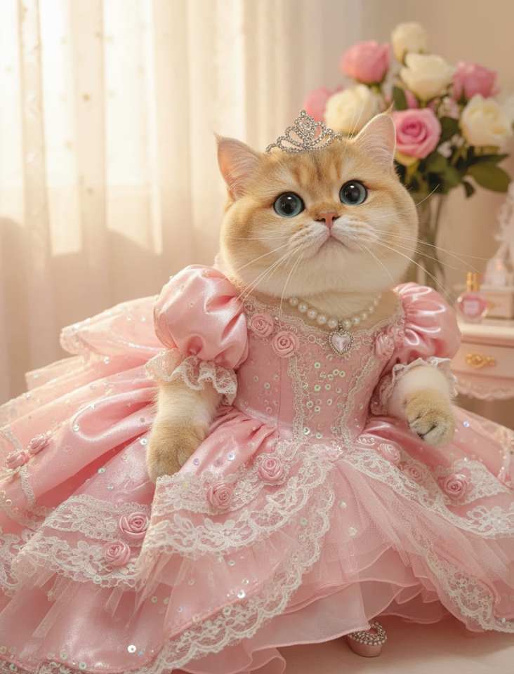 Cute Cat Princess Fantasy Art is a style of AI-generated artwork that transforms your cat into a royal princess, complete with elegant gowns, crowns, and jewels.
