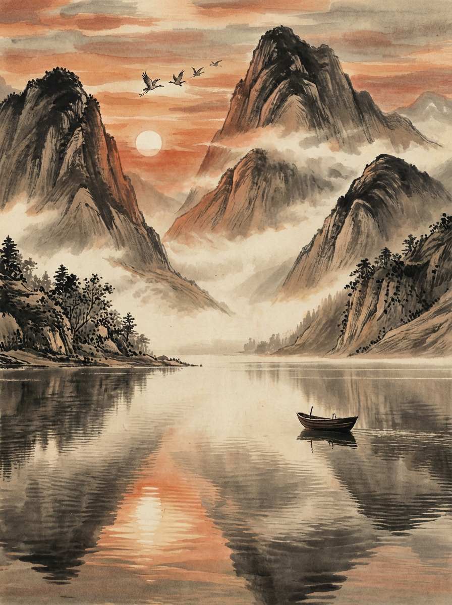 Chinese Ink Painting Traditional Landscape and Calligraphy Style, is a traditional art form that originated in China and uses brush and ink as its core carrier. It emphasizes "using form to express spirit" and "meaning before the pen", and is one of the core representatives of Eastern aesthetics.