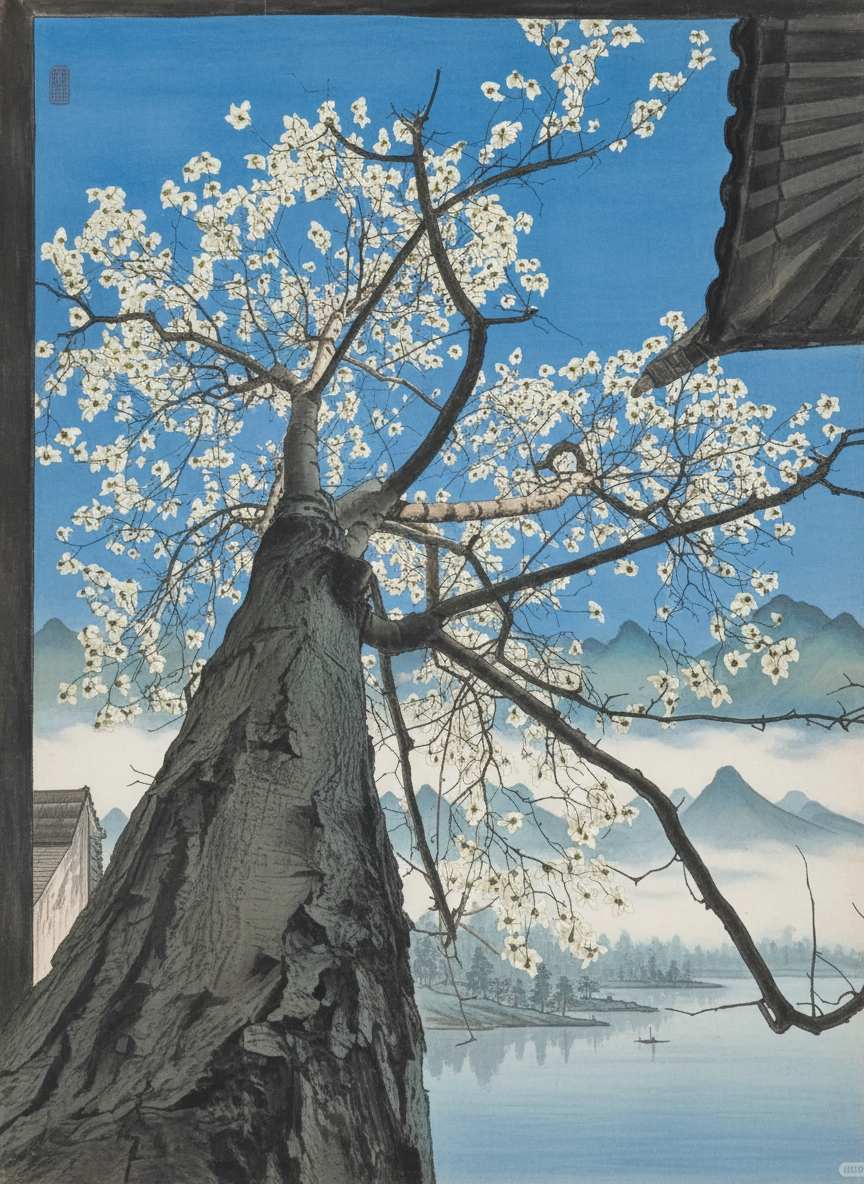 "Mimicking the blue-green landscape colors of Tang Dynasty painter Li Sixun."