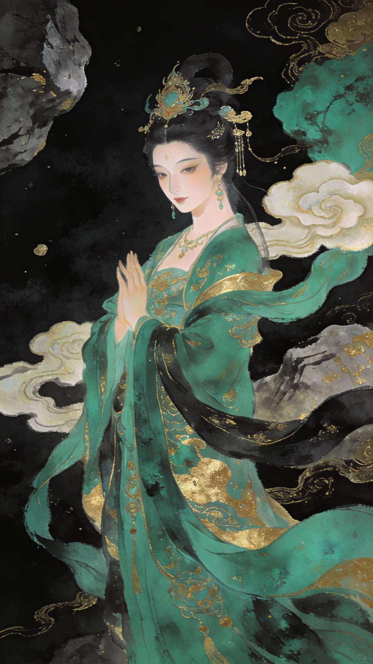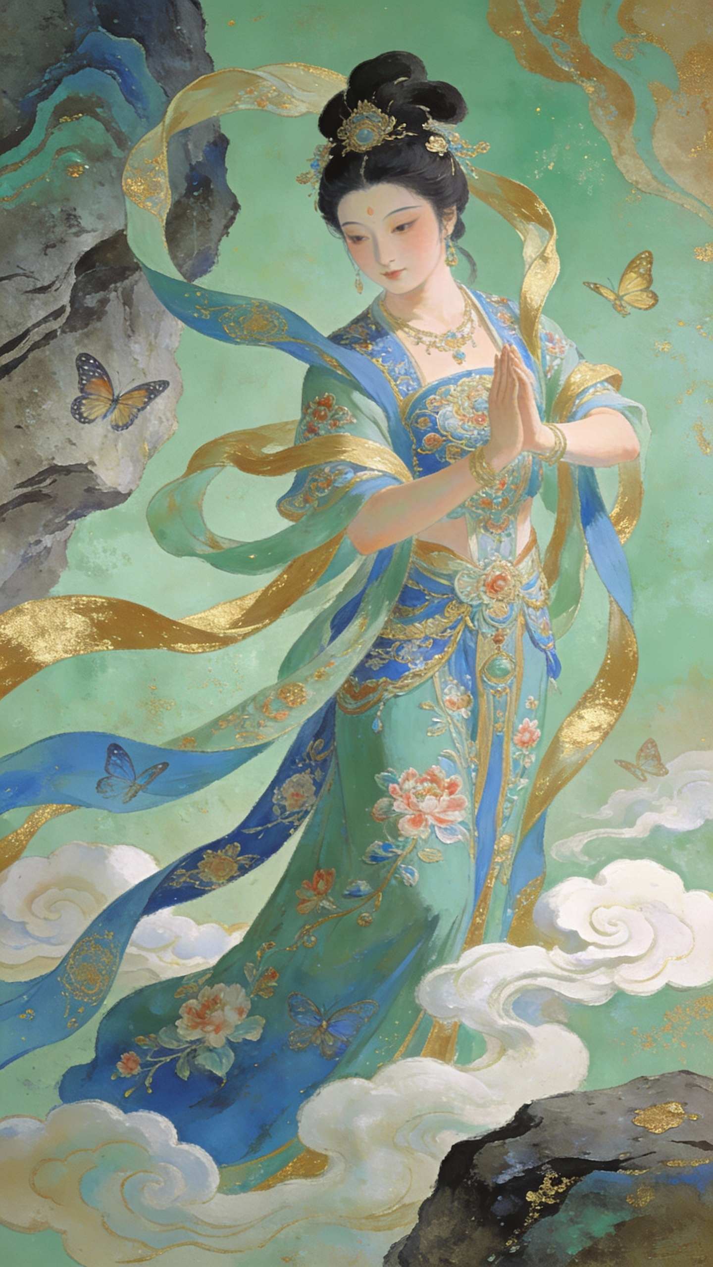 Vibrant Chinese Rock Color Digital Character Illustration Wallpaper Traditional Texture Modern Art is a traditional painting technique using natural mineral pigments, known for its vibrant, textured, and luminous quality. In digital art and AI generation, it refers to an aesthetic that mimics these characteristics—grainy textures, rich layered colors, and a sense of ancient grandeur. As a wallpaper style, it creates stunning, culturally deep, and visually unique backgrounds that are far beyond generic digital art.