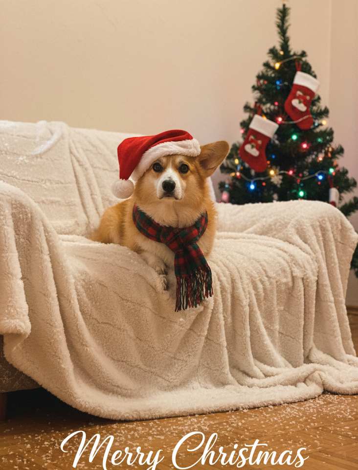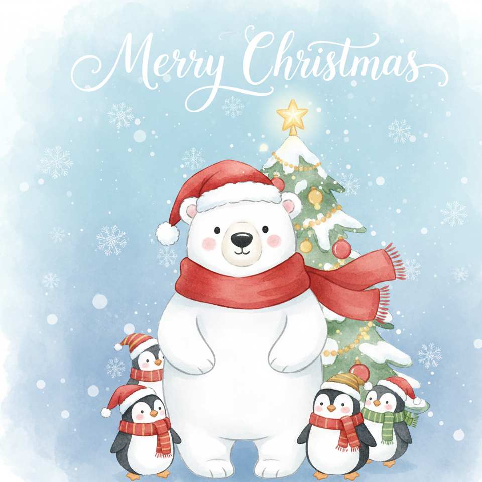 Directly embed text in the prompt, such as 'Display 'Merry Christmas, Joy Always' at the top of the greeting card,' with font [Christmas Script / Rounded Cartoon], ensuring the text fits the Christmas style.