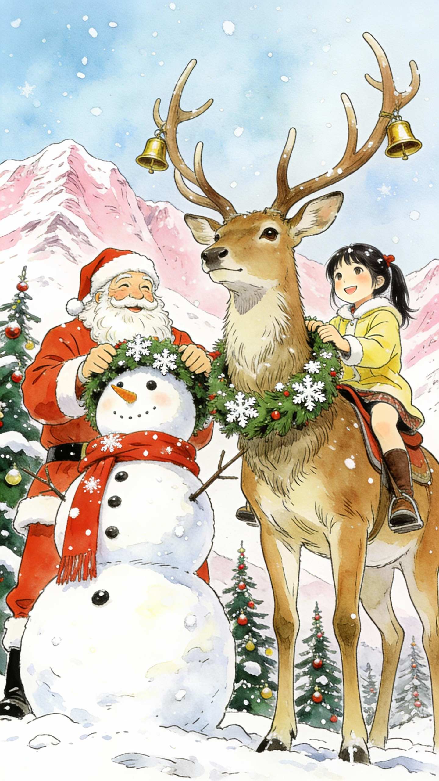 A wallpaper type with Christmas Day elements as the core theme and presented in the form of illustration art, combining holiday atmosphere and artistic aesthetics. It is widely compatible with electronic devices such as mobile phones, computers, tablets, and can also be used for indoor decoration posters