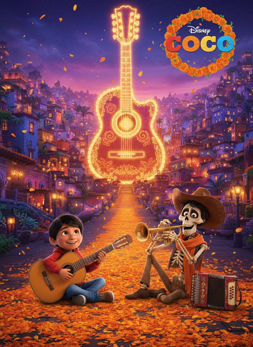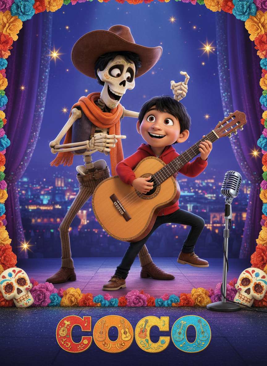 Celebrate your unique family with a vibrant Coco custom poster—personalized sugar skull art brings lively Mexican tradition home. Shop now!