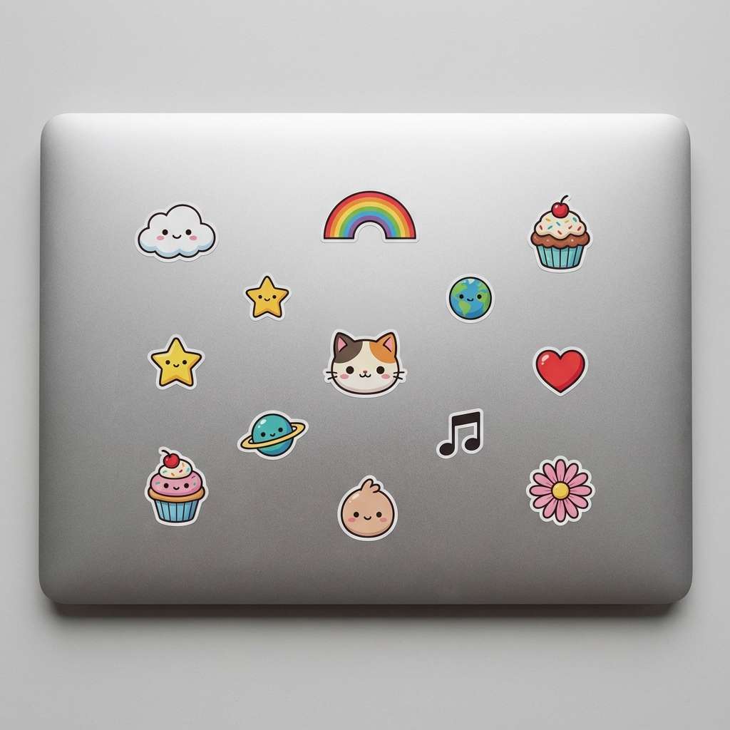 Yes. You can generate coordinated sticker sets that share a unifying cute theme—such as a “pastel forest animals” set with a fox, rabbit, and squirrel sticker, or a “retro tech” set with a floppy disk, game controller, and pixelated computer. The AI will maintain consistent color palettes and design styles across the set, creating a cohesive look for decorating entire laptop surfaces.