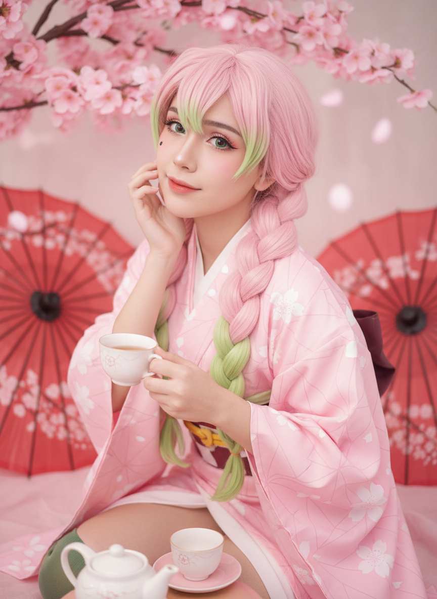 Upload and Replace with Your Own Photo - Edit "Stunning & Authentic Demon Slayer Mitsuri Portrait Anime Hashira Cosplay Art " Prompt Text if Needed
