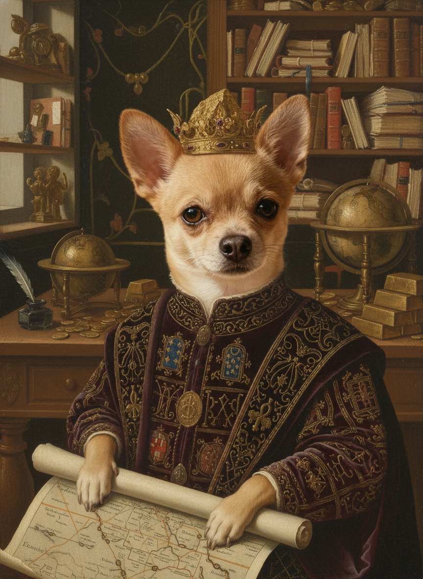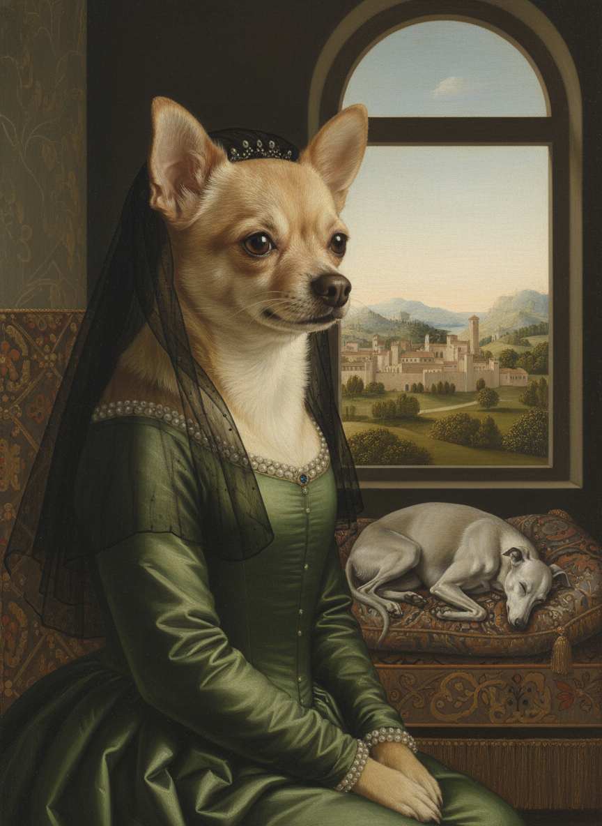Elevate your space with Classic Dog Renaissance Painting Art—timeless charm, unique style. Discover superior canine artistry now!