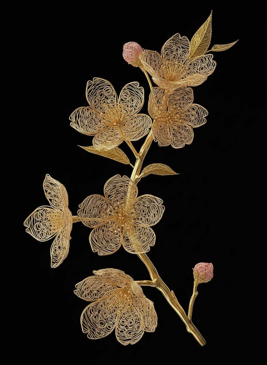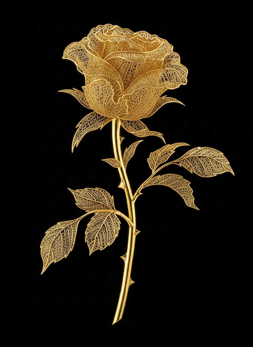 thickness (thin delicate strands for subtlety, thicker threads for bold accents), texture (smooth metallic, brushed matte gold, twisted or braided strands), and finish (polished shine, muted satin, antique gold patina). The AI renders these details authentically to mimic real threadwork—capturing light reflection and texture depth to enhance the luxe feel.