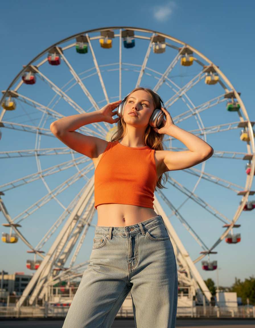 A Ferris Wheel Photoshoot AI Generator is a creative tool that uses artificial intelligence to generate stunning, photorealistic images of people posed for a photoshoot with a ferris wheel as the central backdrop. It allows you to create the perfect shot without needing to be at a carnival, dealing with crowds, or relying on perfect weather and lighting conditions.
