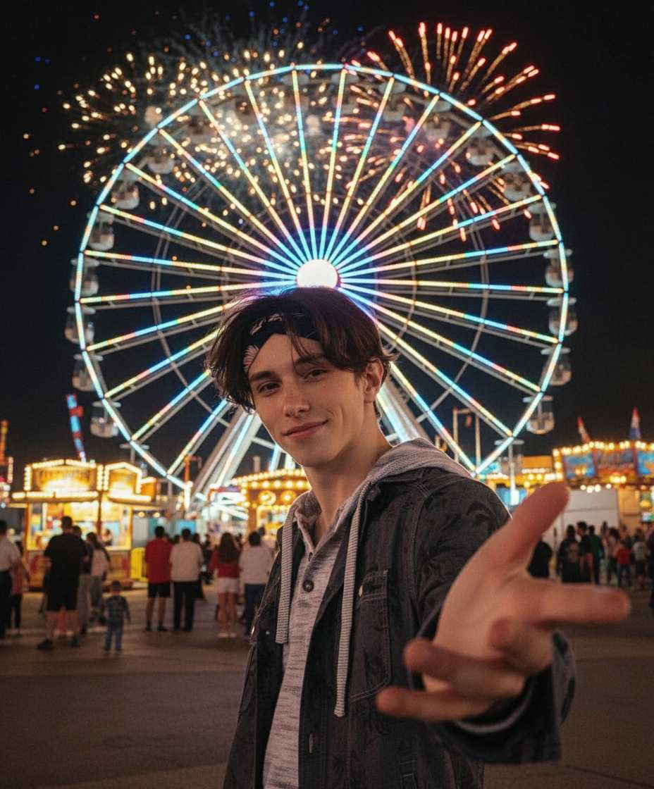 High-quality AI generators excel at compositing realism. They match the lighting direction, color temperature, and shadow intensity on your subject to the generated ferris wheel environment. They also adjust the depth of field (background blur) and add subtle light reflections (like the colored glow from the wheel on skin or clothing) to create a cohesive, believable photograph.