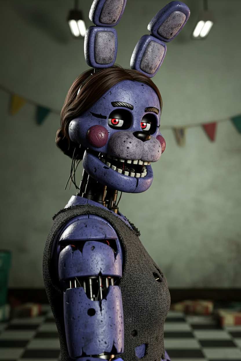 Generate custom horror character art in Five Nights at Freddy's style with AI. Create eerie animatronic-themed images and scenes.