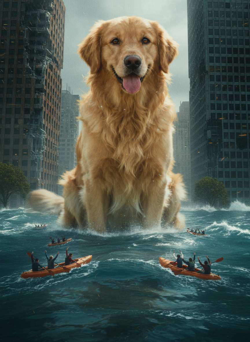 Whimsical & Cute Giant Pet Fantasy City Adventure Oversized Animal Friend AI Generator: Craft whimsical, hyper-real giant pet scenes with real-world backdrops easily.