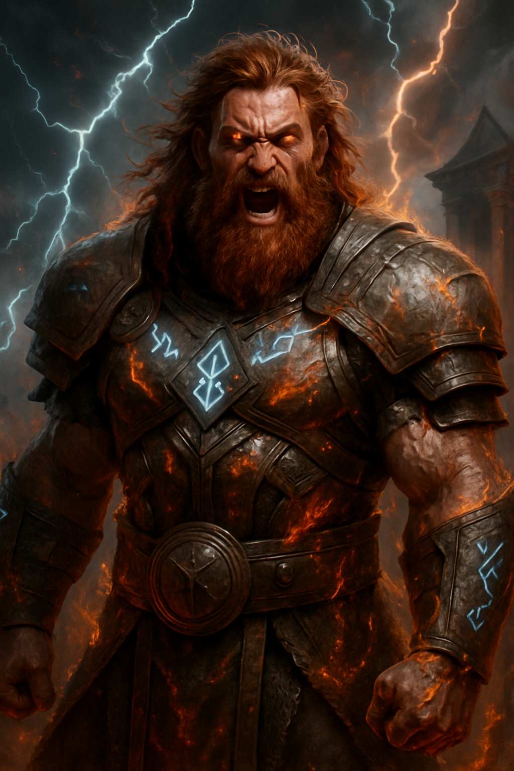 Yes. You can incorporate runic inscriptions (on weapons, armor, or ruins) that align with Norse/Celtic mythology, as well as symbolic elements like ravens (a nod to Odin), Yggdrasil (the world tree), or glowing magical auras. Atmospheric effects—such as swirling snow, falling ash, crackling lightning, or billowing smoke—can also be added to amplify the intense, dramatic mood of the art.