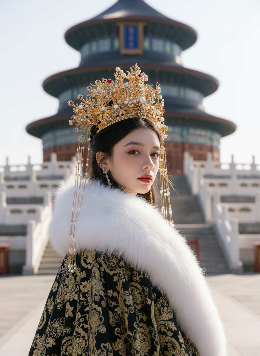 Click to Generate a Photo – Instantly Get a Stunning Artwork Similar in Style to "Cultural Hall of Prayer for Good Harvests Photoshoot Traditional Chinese Architecture Portrait"