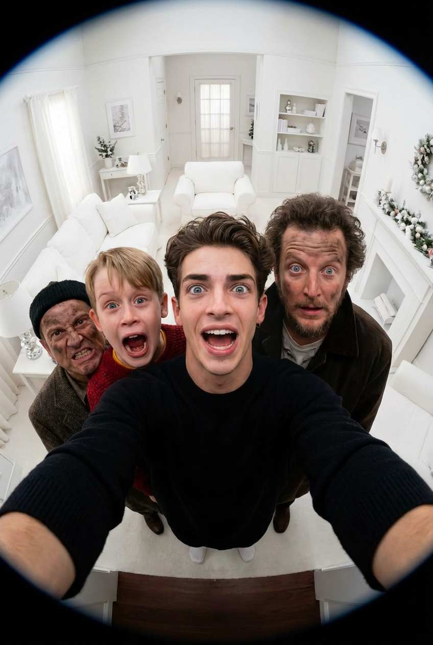Home Alone Group Photo AI Generator: Make fun, nostalgic group photos with a cozy vibe instantly.