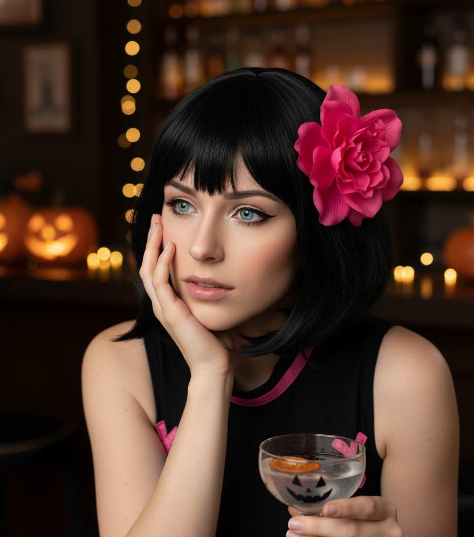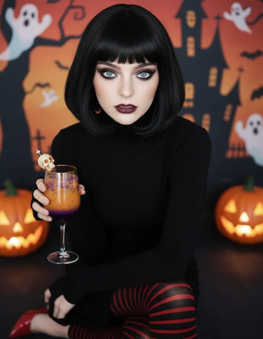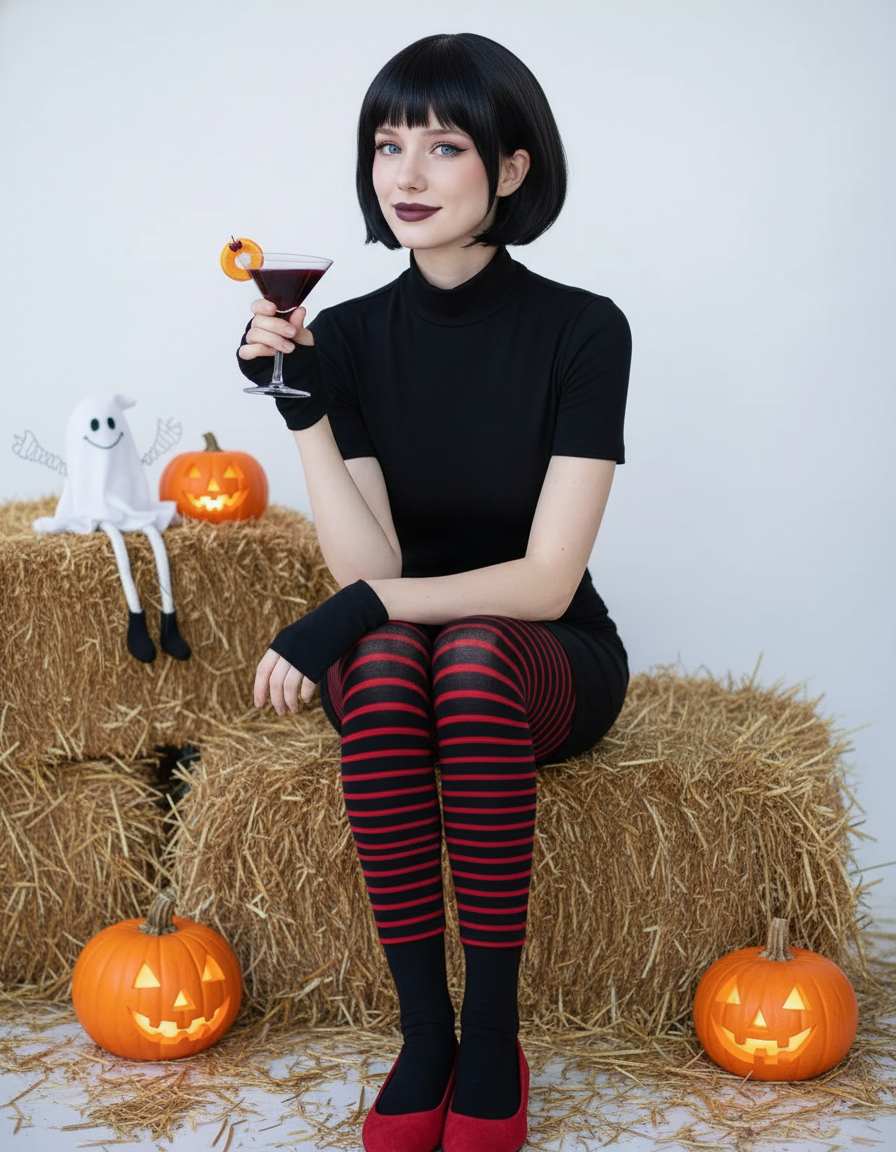 Upload and Replace with Your Own Photo - Edit "Gothic & Cute Hotel Transylvania Mavis Style Portrait Vampire Halloween Cosplay" Prompt Text if Needed