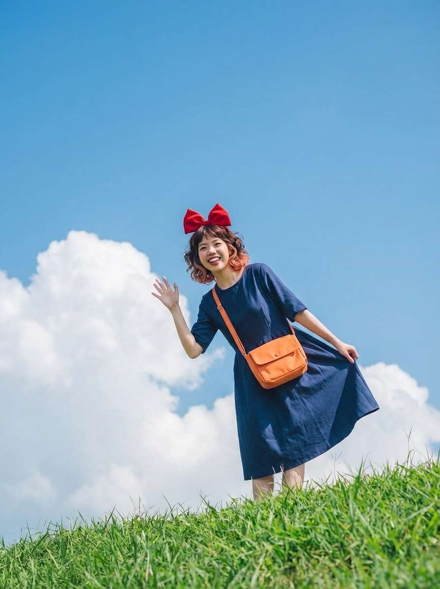 It’s a specialized AI tool designed to create new clothing ensembles that perfectly match the iconic aesthetic of Kiki from Kiki’s Delivery Service. Instead of copying her single movie outfit, it understands and applies her core style formula—a simple black dress or top/skirt combo, a large red bow, and a vintage, practical feel—to generate endless fresh, context-appropriate variations that still feel authentically “Kiki.”