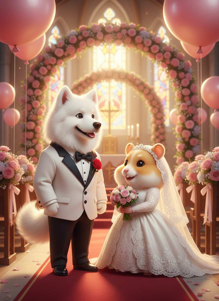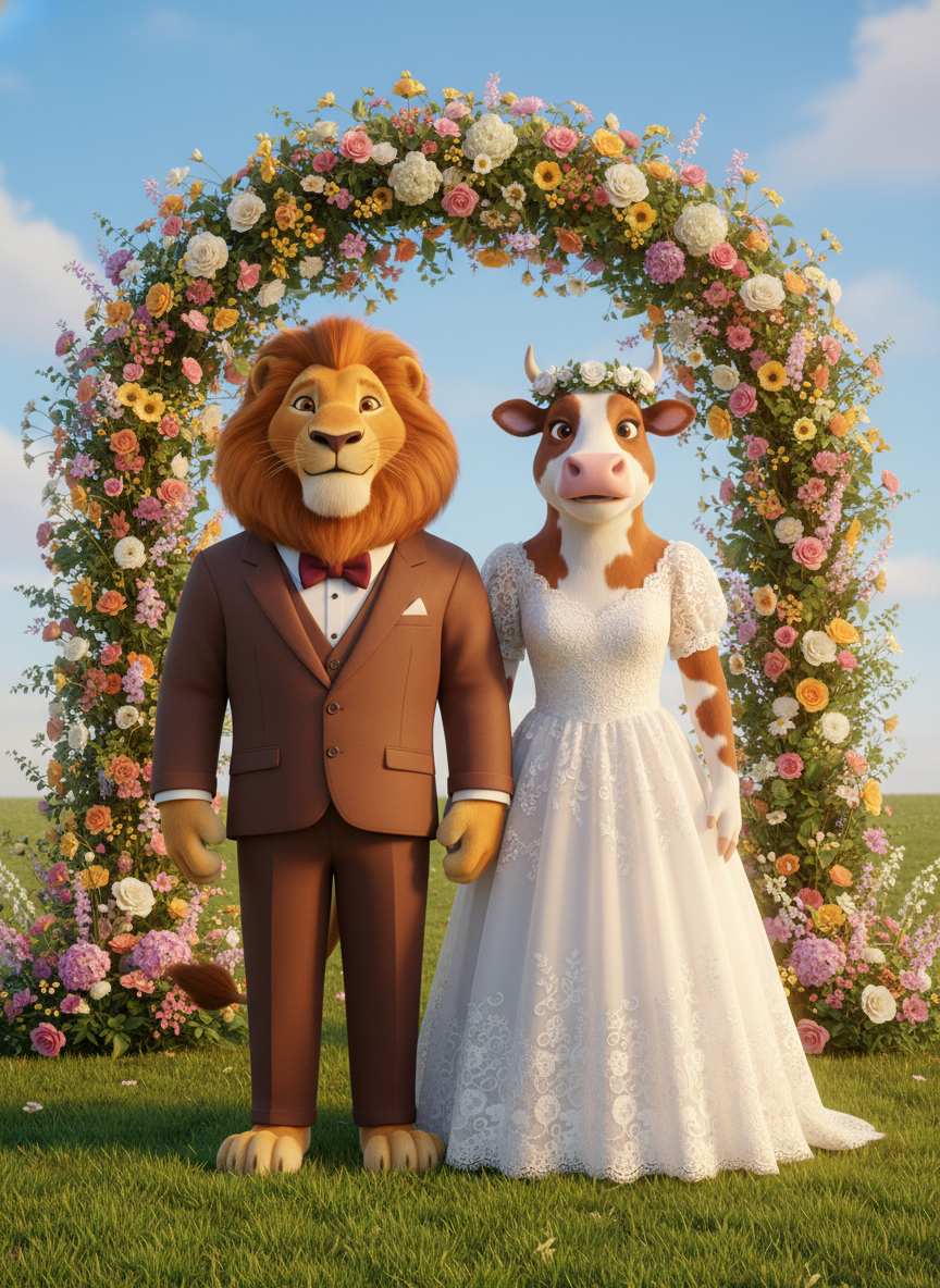 Whimsical Inter-species Wedding Scene Illustrations AI Image Generator