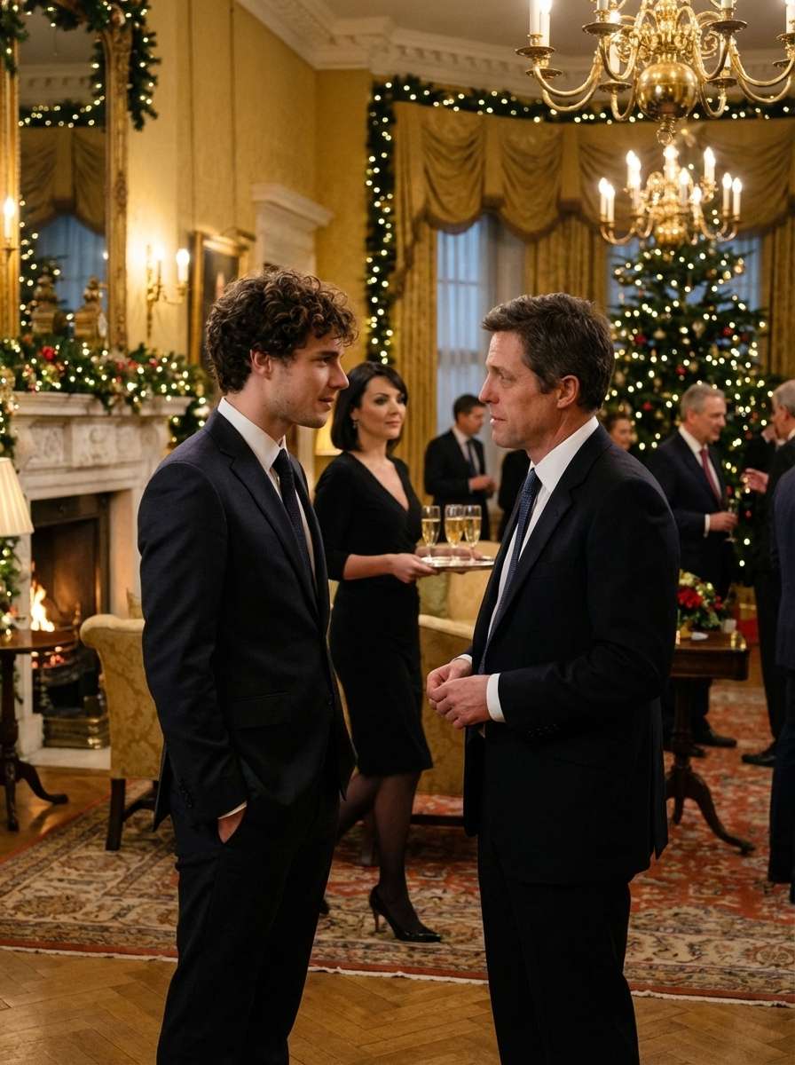 Setting: “A cozy, decorated living room,” “a bustling airport terminal,” “a snowy London street,” “a Christmas concert backstage.”