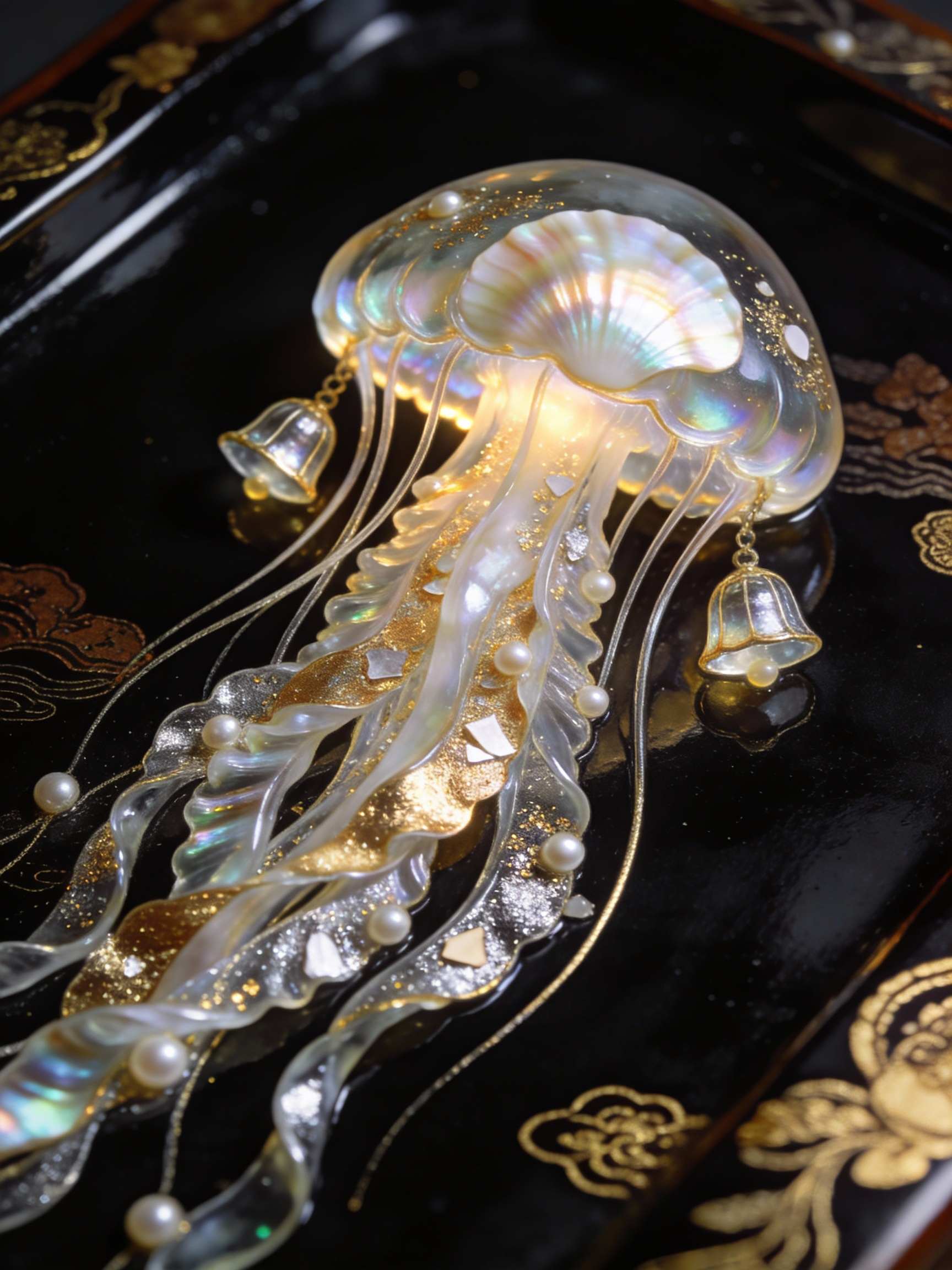 The creative illustration form that combines the transparent texture of mother of pearl and glass artistically creates a picture that combines a sense of life and visual tension. It is commonly used in commercial design, creative posters, or artistic creation fields.