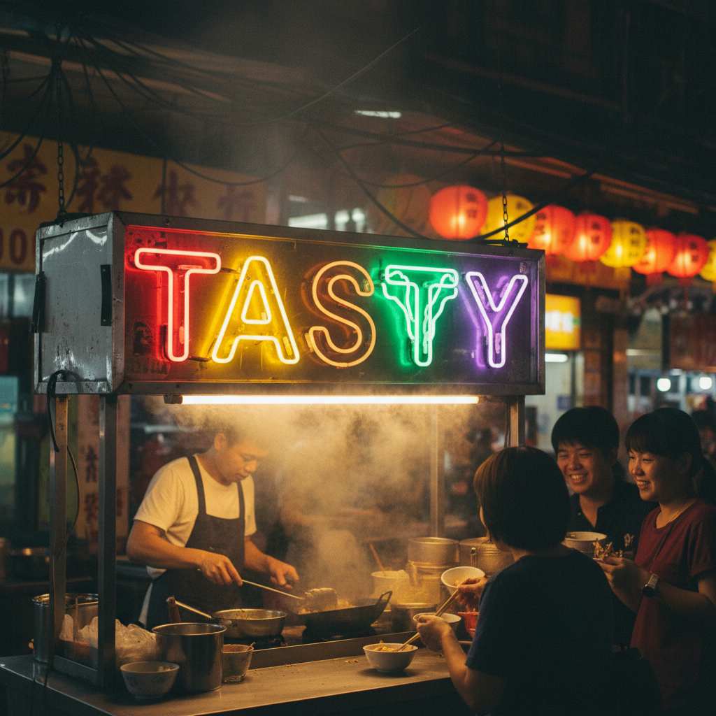 Add the prompt 'neon font glow intensity [medium / strong], outer layer [pink / blue] soft halo, with a slight electric flicker texture,' and supplement with 'smooth edges without jaggedness' to make the glow effect more realistic.