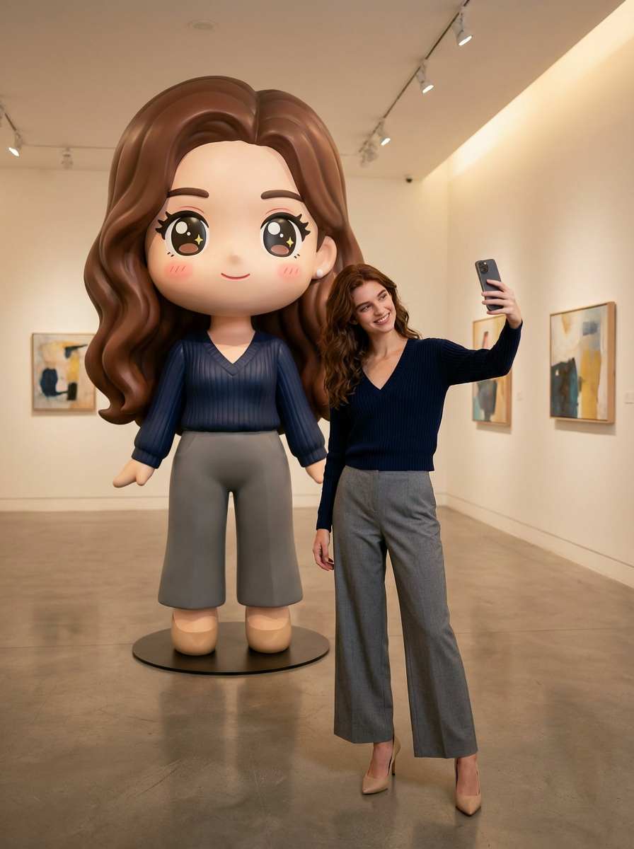 It’s an AI tool that transforms your figurine, toy, or collectible into a giant, life-sized character placed beside you in a realistic photo.