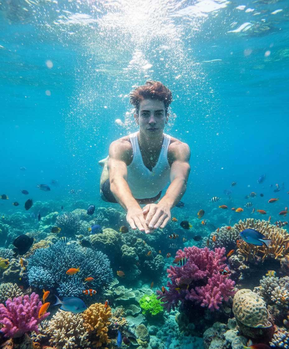 It's an AI tool specialized in creating photorealistic images that look like they were taken by a diver underwater. It simulates the unique lighting, colors, and atmosphere of the ocean at various depths, allowing you to generate scenes with marine life, coral reefs, and divers without needing to be in the water with a camera.