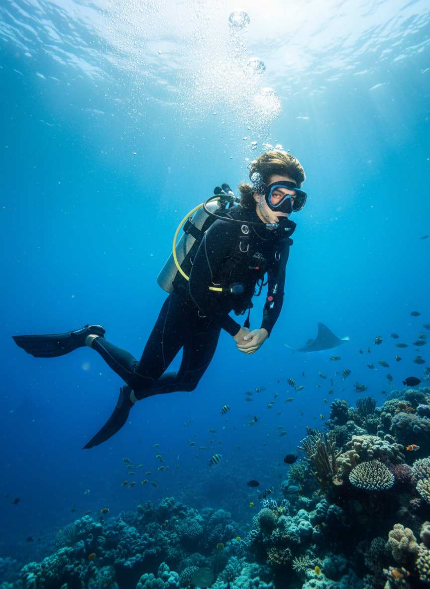 Composite & Match: Use editing software (Photoshop, Affinity Photo, Photoroom). Cut out the diver, place them in the scene, and painstakingly match the lighting color (add a blue/green tint), intensity, and direction. Add realistic bubbles from the regulator (using brush tools or stock images) and ensure the diver casts a subtle, soft shadow if near the seafloor.