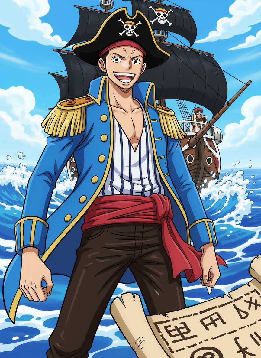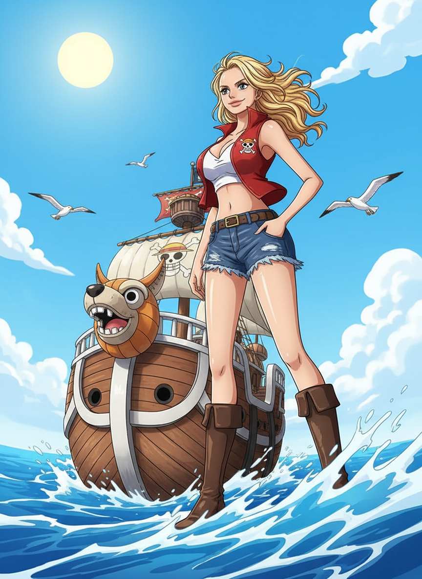 Absolutely. You can generate entire scenes (like a custom pirate ship sailing the Grand Line, a new island landscape, or a dramatic battle scene), concept art for new Devil Fruits, unique Jolly Roger pirate flags, or stylized versions of real-world objects as they might appear in the One Piece world.