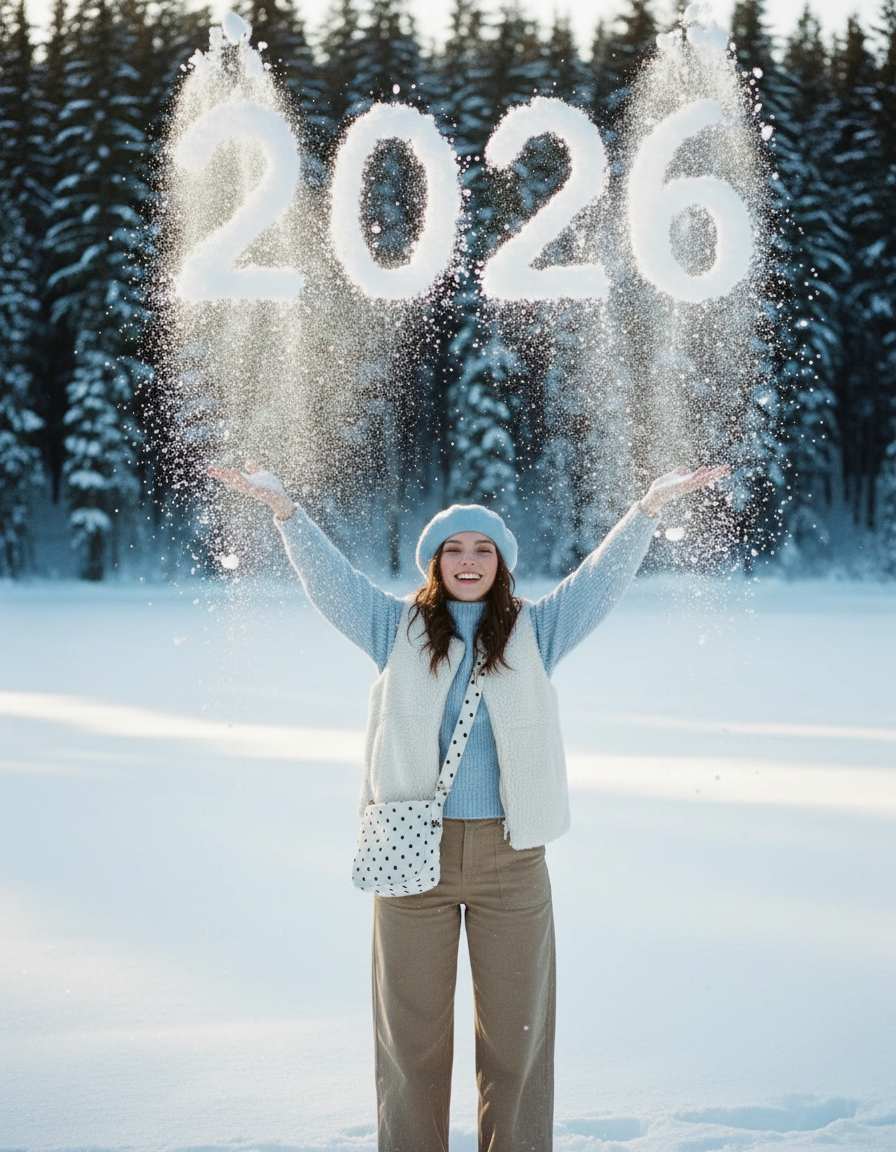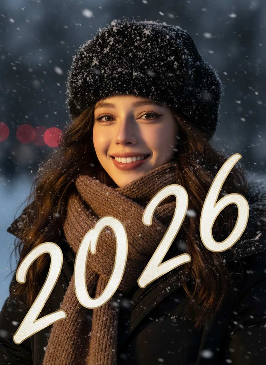 Absolutely. Include keywords such as "2026 New Year lights in snowy scenery" or "2026 Christmas tree in snow" to integrate seasonal elements.