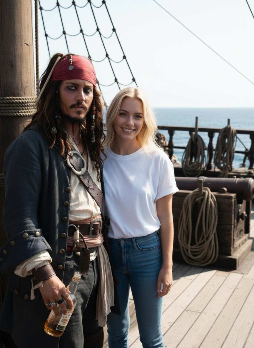 In this context, “Captain Jack” overwhelmingly refers to the iconic character Captain Jack Sparrow, portrayed by Johnny Depp in the Pirates of the Caribbean film series. This AI generator allows you to create a realistic or stylized photograph of yourself alongside this beloved pirate character, as if you met him for an adventure.