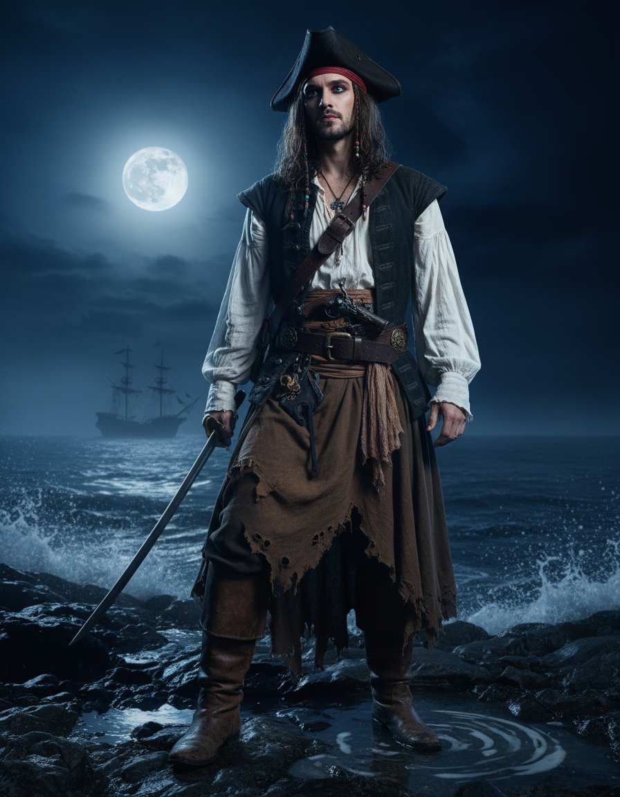 Yes! The most effective method is using image-to-image generation. Upload a clear, well-lit headshot. In your prompt, heavily emphasize the PotC style transformation. For example: “A portrait of [man/woman] as a pirate in the ‘Pirates of the Caribbean’ film style. Grungy, detailed 18th-century pirate costume, weathered face, dramatic cinematic lighting, on a ship’s deck at dusk.” The AI will reinterpret your features within that iconic style.