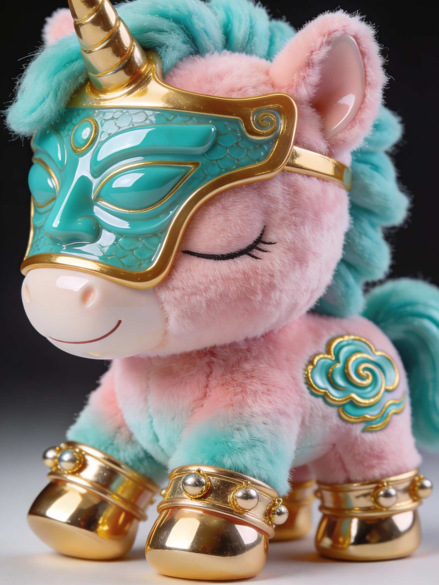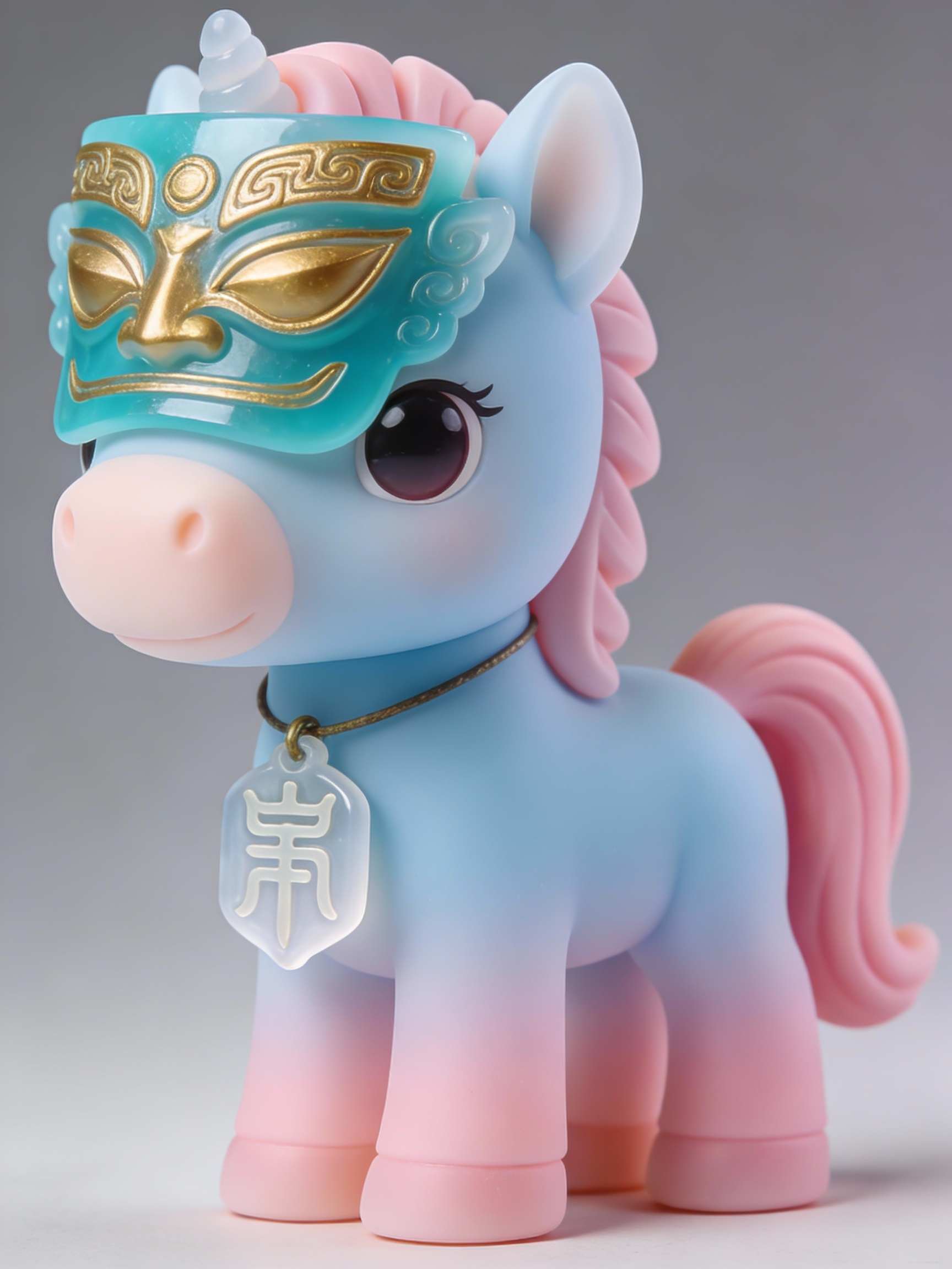 Our AI incorporates signature Sanxingdui characteristics into pony designs: prominent, stylized eyes often with a mysterious gaze; intricate linear and spiral patterns inspired by bronze textures; elements like sun disks or bird motifs in the mane or tail; a color palette that references ancient bronze patinas (greens, golds, browns); while maintaining the soft, cute proportions of Q-version cartoon characters.