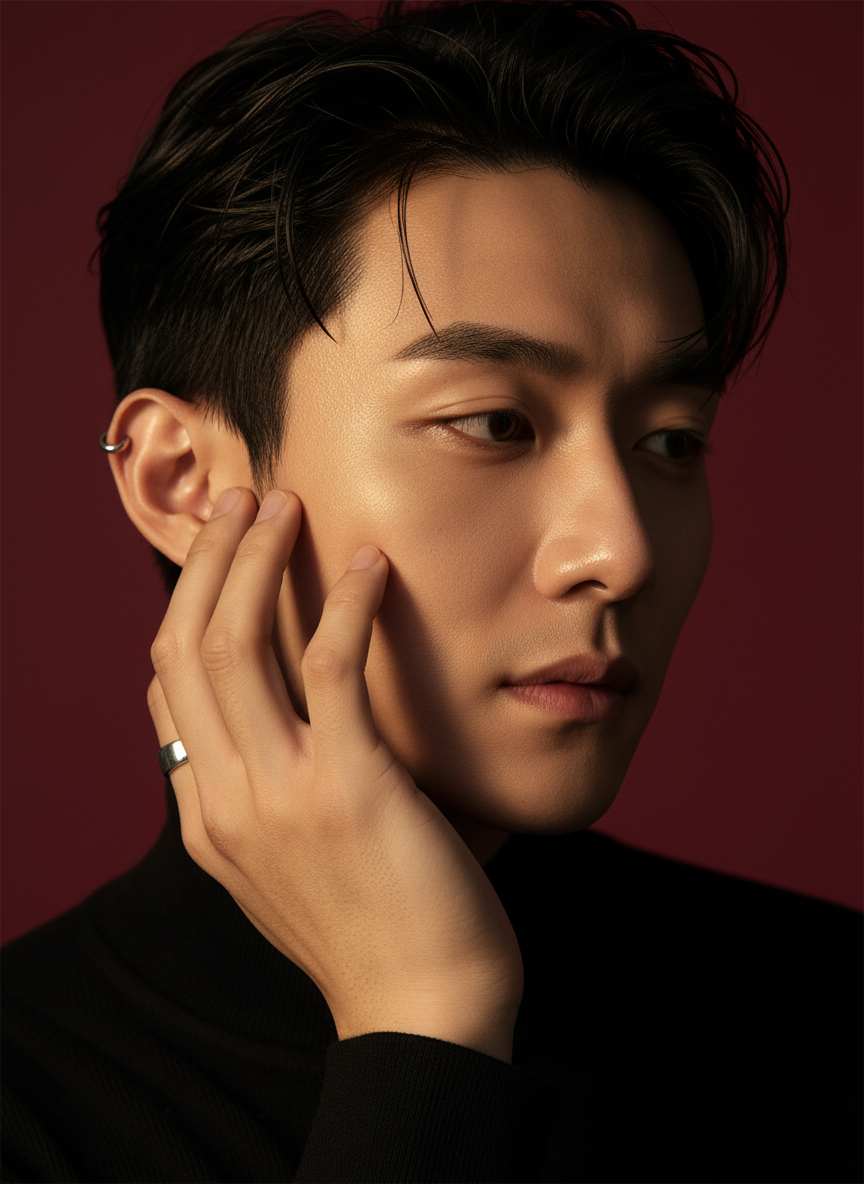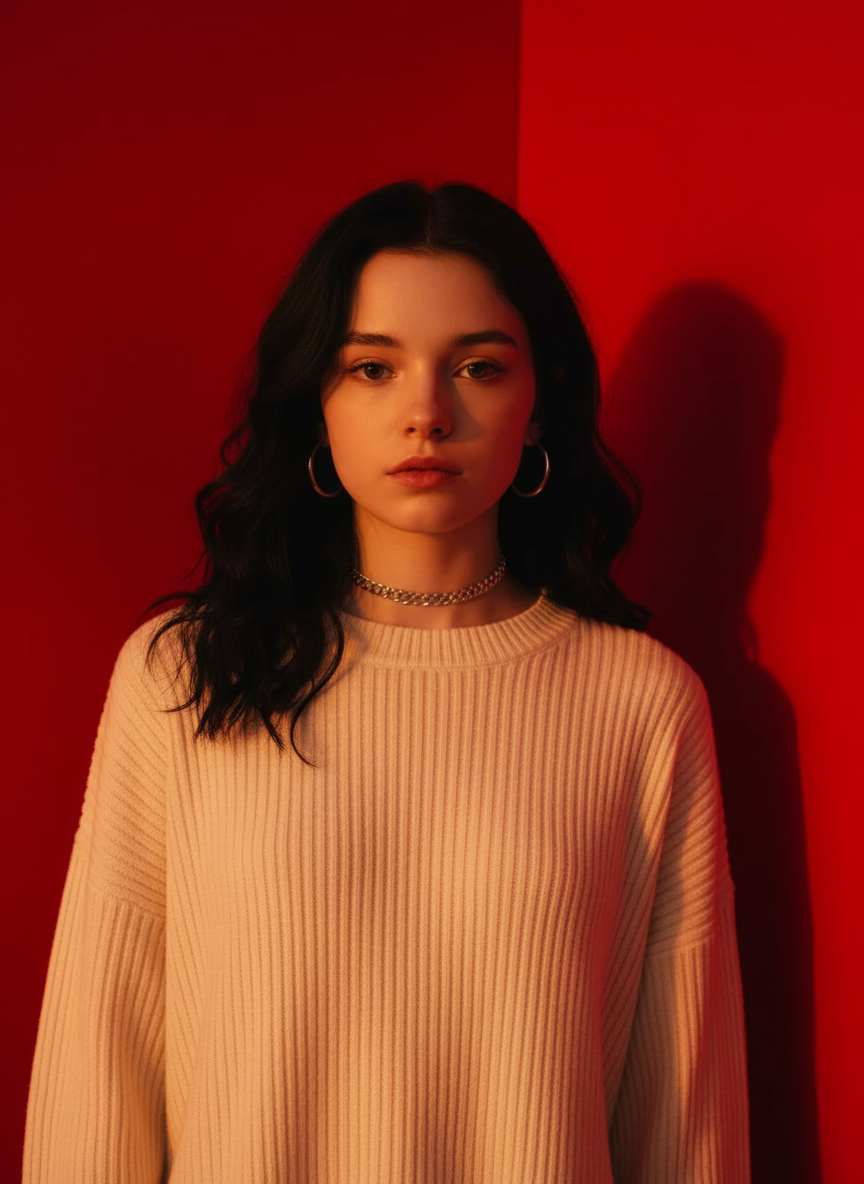 This Fashionable Red Background Light and Shadow Portrait Blockbuster Visual Art Draft combines bold red backdrops with dramatic light and shadow contrasts, crafting striking, high-fashion portrait visuals that showcase sleek aesthetics and artistic depth for creative projects, brand campaigns, and portrait photography concepts.