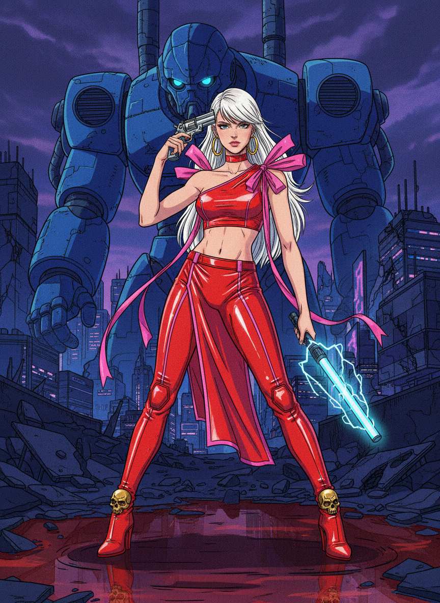 Classic 1980s retro and casual style Cyberpunk is a creative artistic style that deeply integrates the visual aesthetics of 1980s Japanese anime with Cyberpunk's core world view. It has both retro and nostalgic anime texture and the cold alienation of future technology. It is a unique creative paradigm created by the collision of retro trends and science fiction themes