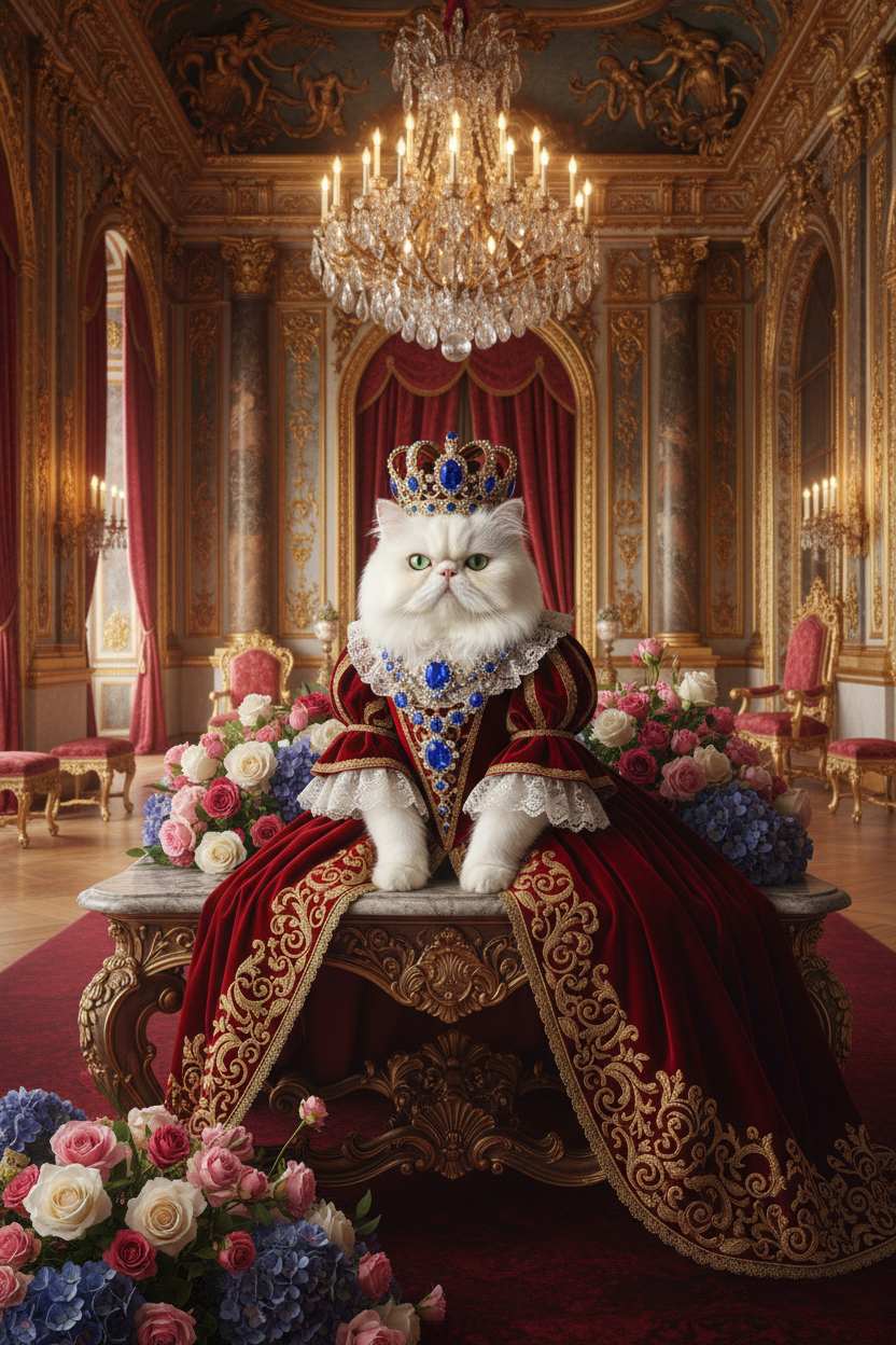 It’s an AI tool that turns your cat’s photo into a luxurious royal-style portrait, featuring costumes, crowns, ornate outfits, and classic painted aesthetics.