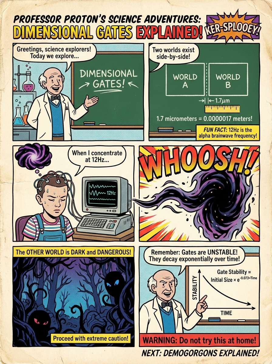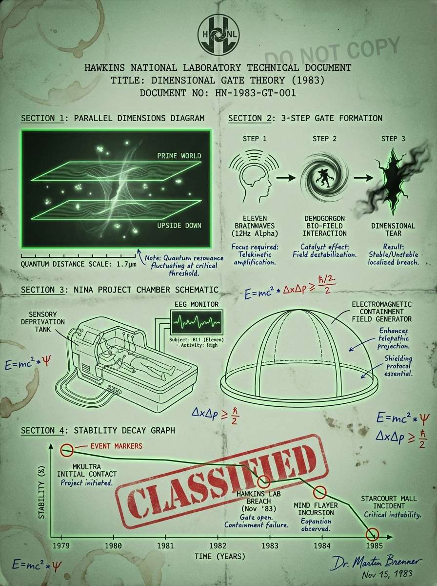 “Generate a cross-sectional diagram showing how the Mind Flayer’s particles travel through a stabilized wormhole between dimensions, annotated with Dustin’s notes on hive mind connectivity.”