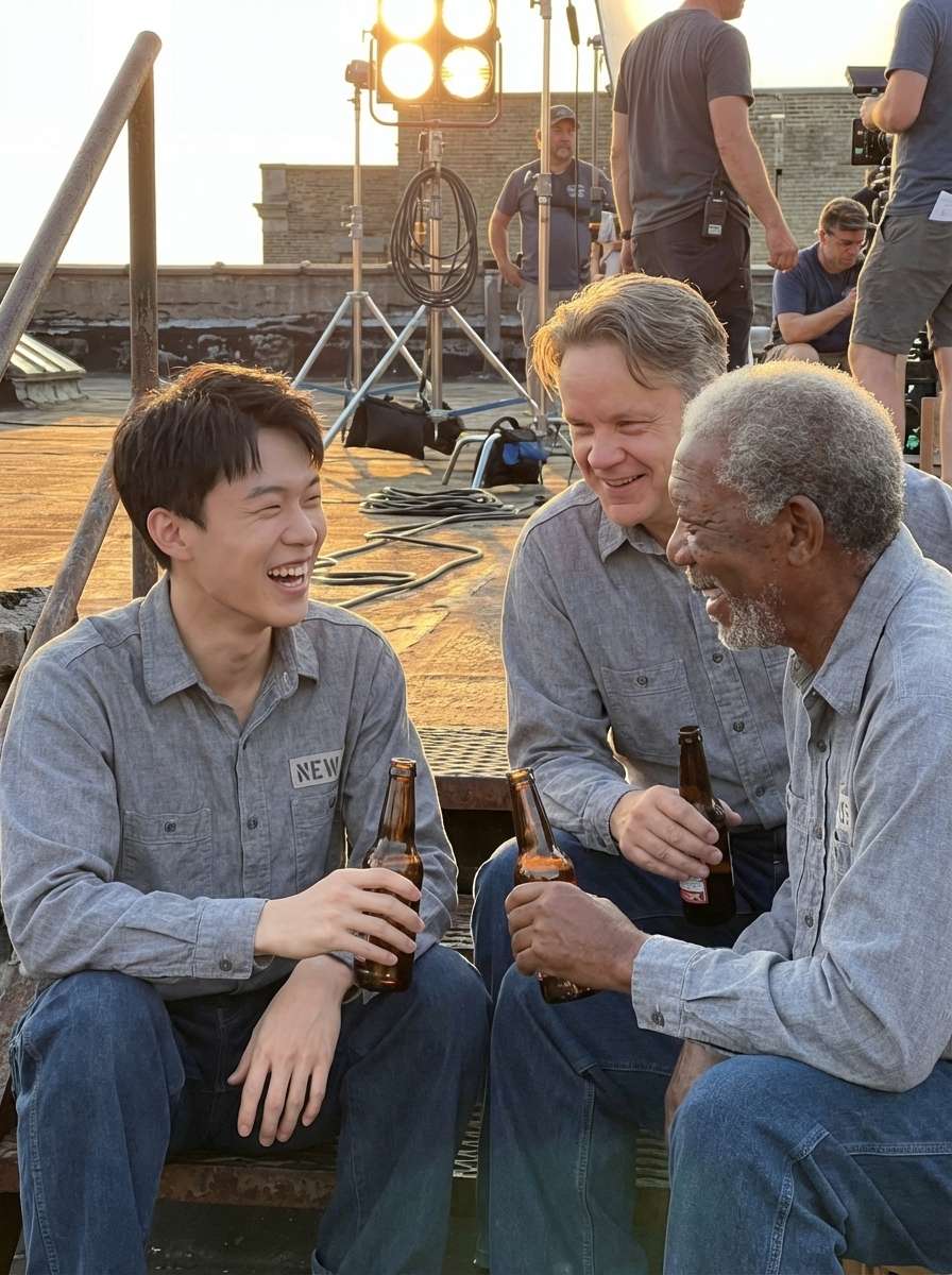 Iconic & Emotional The Shawshank Redemption On-Set Group Photo Tim Robbins Morgan Freeman Behind the Scenes AI Image Generator