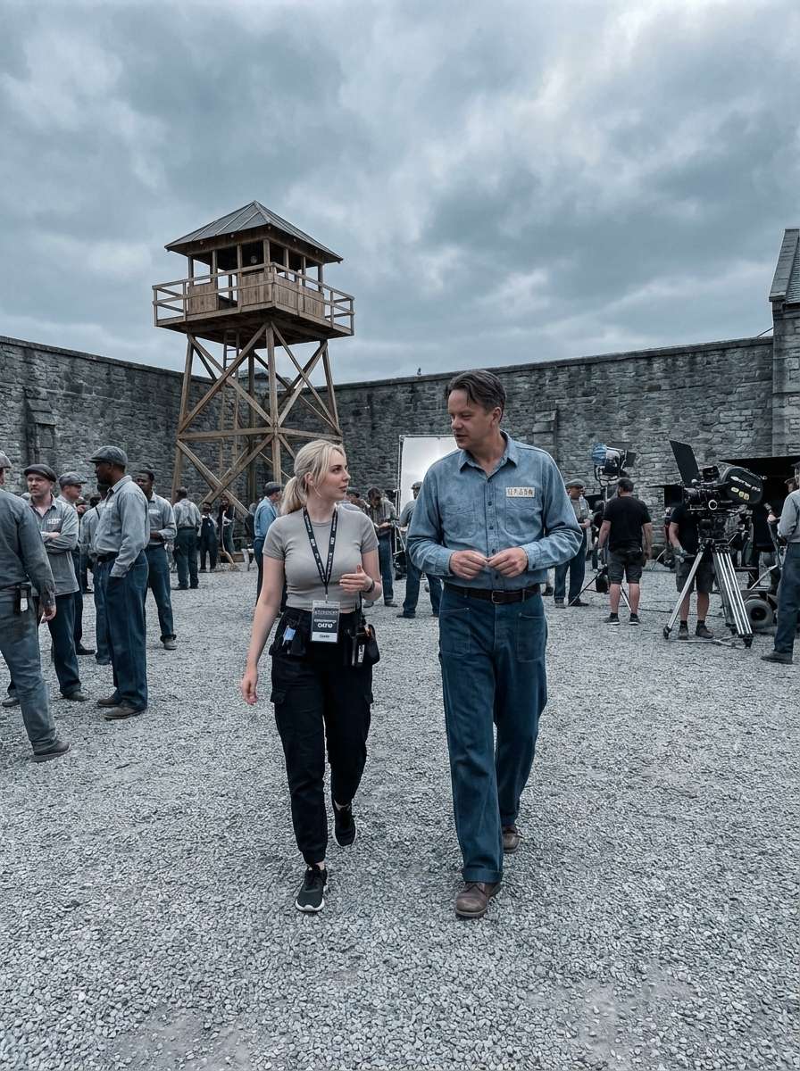 The generator can place you in environments inspired by the actual filming locations. This includes the prison yard walls, the warden's office, the library, the industrial workshop, or against generic period-appropriate brick walls and trailers that evoke a working film set. The focus is on creating a believable backdrop that suggests the atmosphere of the Mansfield, Ohio reformatory where the movie was shot.