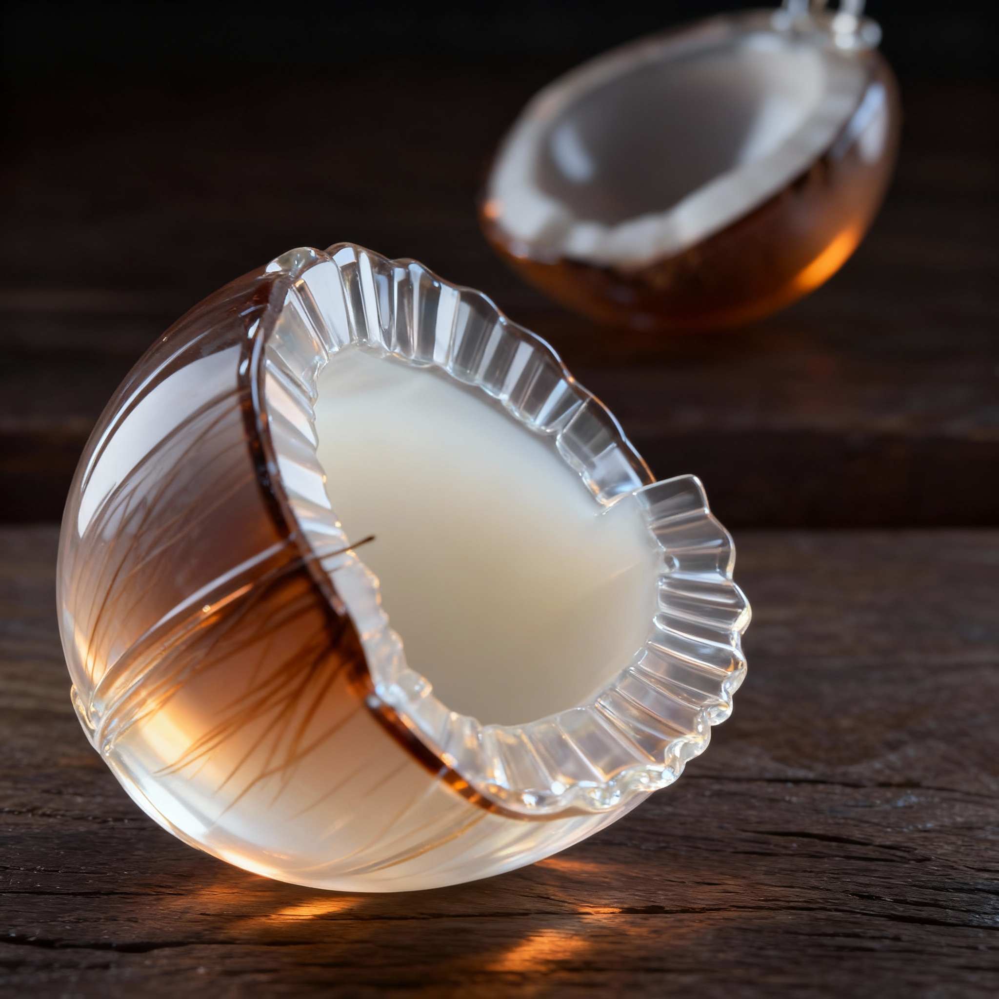 Translucent Glass Fruit Glowing Crystal Texture Light Refraction Minimalist Design High Detail Close-up Shot AI Image Generator
