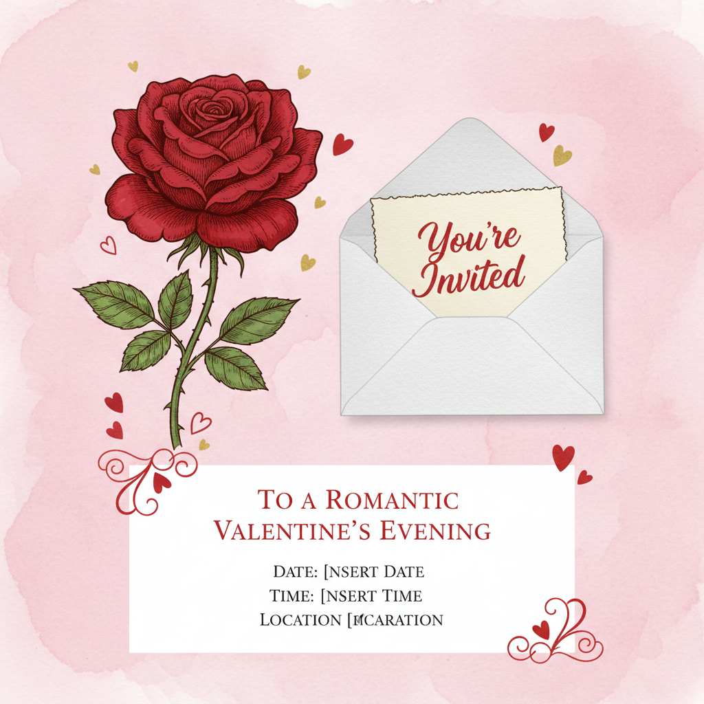 Click to Generate a Photo – Instantly Get a Stunning Artwork Similar in Style to "Romantic Valentine’s Day Party Invitation Creative Template Material"