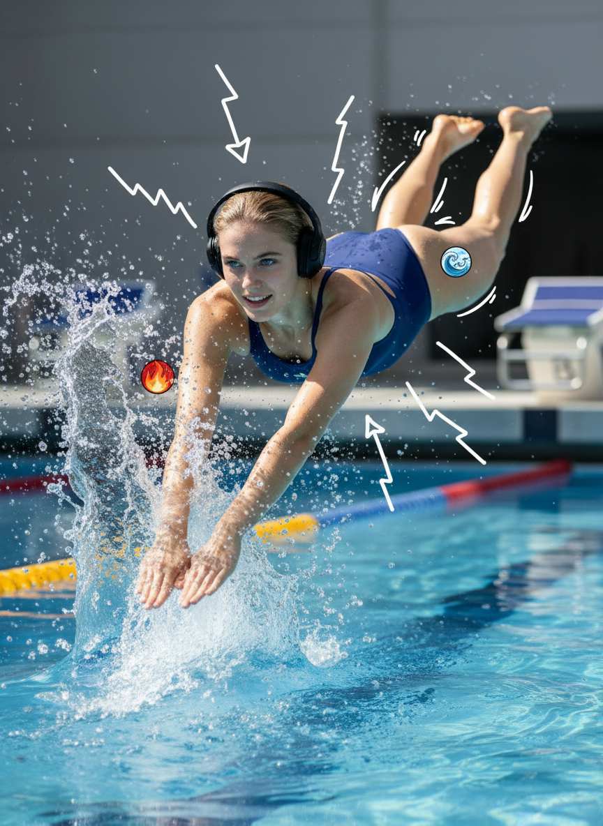 How can the water in a swimming pool feel realistic and clear (like sparkling ripples and natural splashes), while highlighting the vitality of the people and the summer atmosphere?