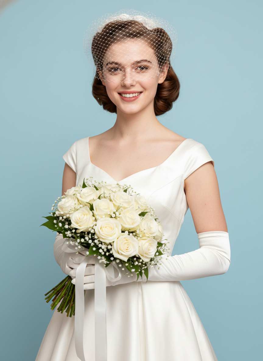 1920s Gatsby-style (beaded flapper dresses, tuxedos with pocket squares), 1940s wartime elegance (slim-fit gowns, tailored military-style suits), 1950s retro charm (full-skirted ballgowns, crew-cut hairstyles), or 1960s mod simplicity (sleek shift dresses, slim suits). The AI will render attire with era-accurate details, from lace patterns to fabric textures, to enhance the vintage authenticity.