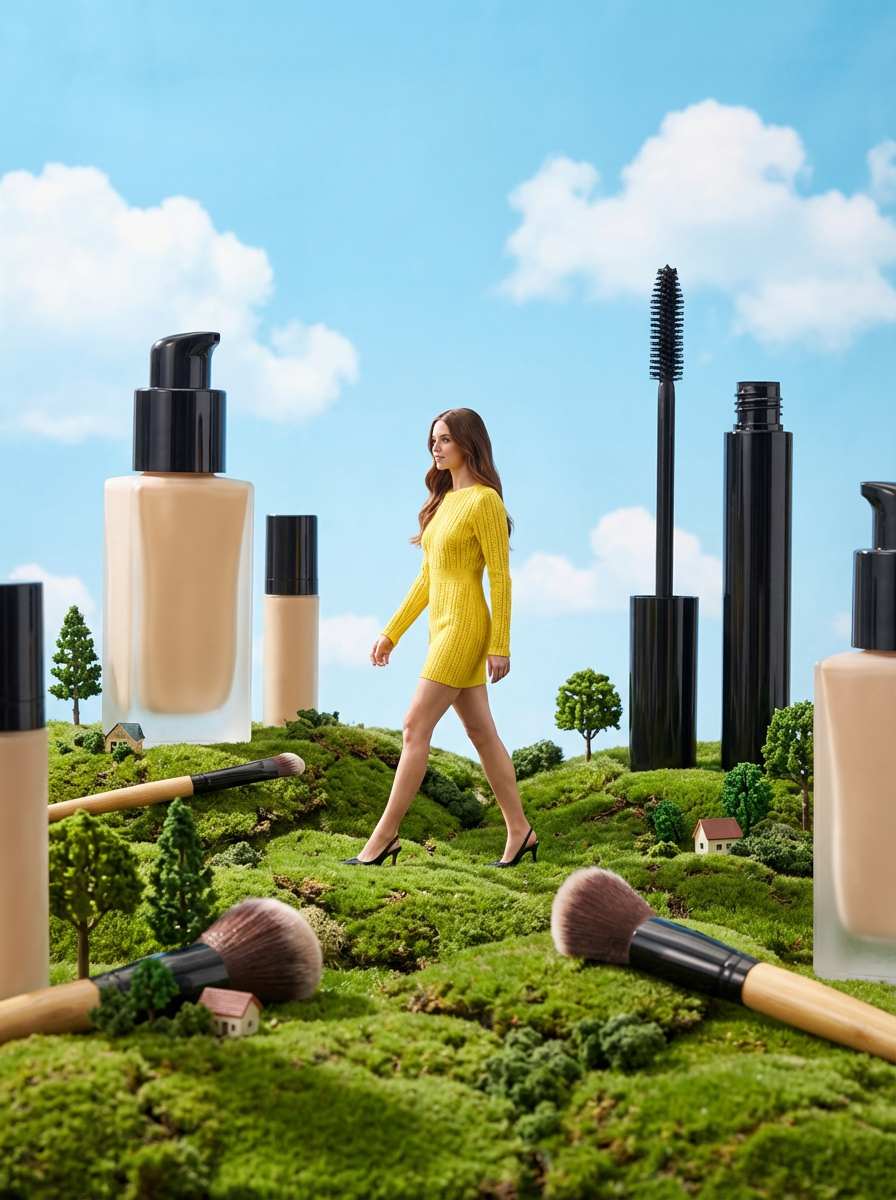 Ideal palettes align with both the beauty product’s hues and the miniature world’s theme: soft pastels (blush pink, lavender, mint green) for gentle skincare lines; bold, neon accents (hot pink, electric blue, tangerine) for vibrant makeup brands; earthy tones (terracotta, sage green, warm beige) for natural/organic beauty products; and metallic finishes (rose gold, silver, gold) for luxury beauty lines. The AI balances color saturation to keep the poster visually cohesive and eye-catching.